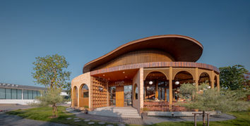 หลังคาภายนอก ที่มีลักษณะการพริ้วไหวเกิดจากการทดลองนำพัดกระดาษมาต่อกันให้ครบรัศมีของวงกลม และใช้ลมเป่าตามทิศทางของลมจริง ทำให้เกิดรูปทรงของหลังคาที่กระพือ ตาม Effect ที่เกิดขึ้น