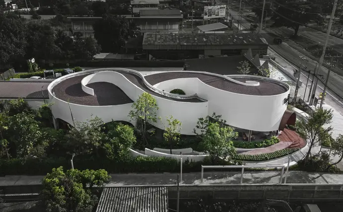 นับเป็นอีกโปรเจกต์ที่ได้รับความไว้วางใจจาก แบรนด์ KOPIHUB ที่ให้เราออกแบบ Flagship Building ประจำภาคอีสานที่มีขนาดใหญ่ที่สุด ภายใต้แนวคิด "มัดไหม" ซึ่งเป็นของดีประจำจังหวัดโคราช
